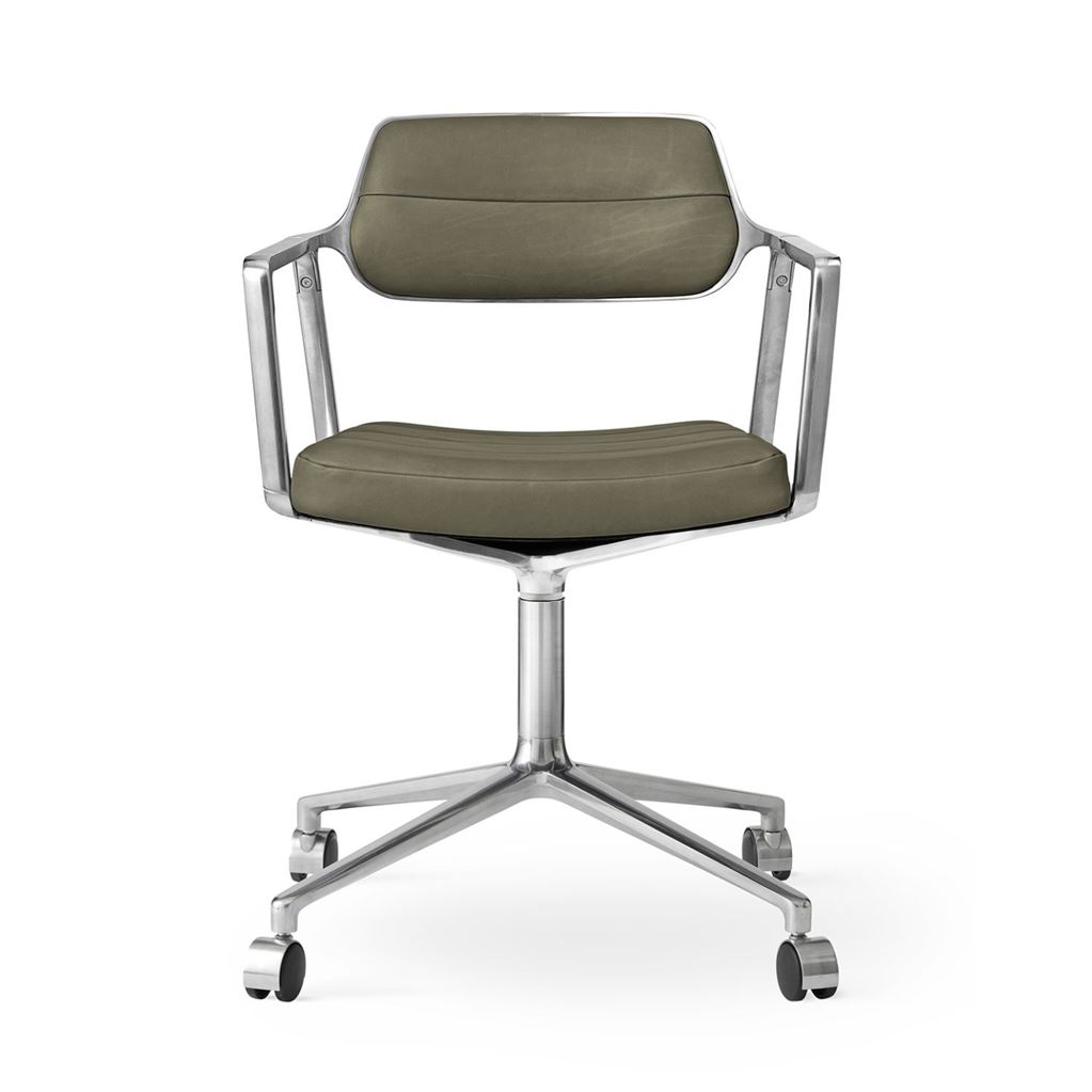 Vipp 453 Swivel Stol m. Hjul - Aluminium/Bosco Green Læder