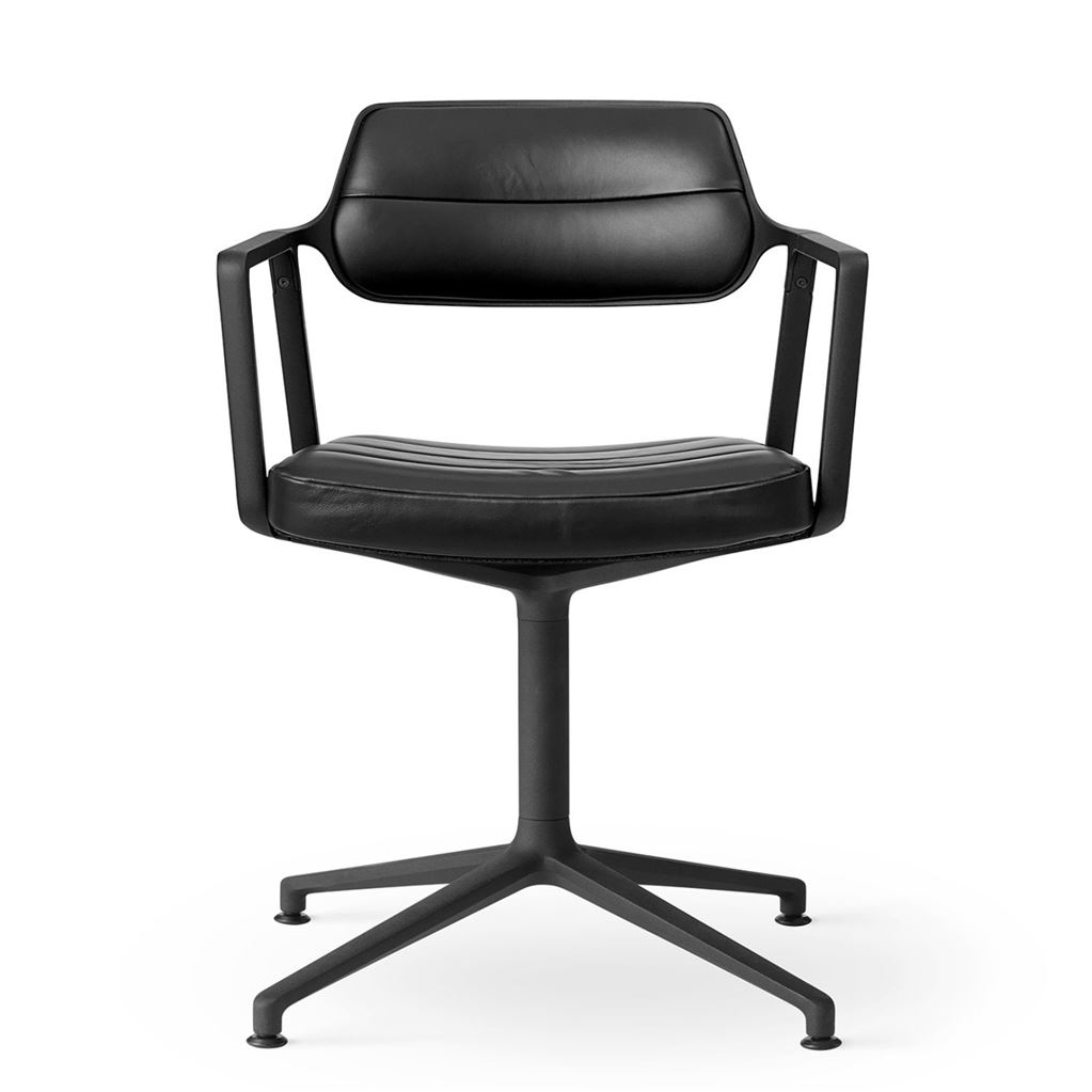 Vipp 453 Swivel Stol u. Hjul - Sort Aluminium/Sort Læder