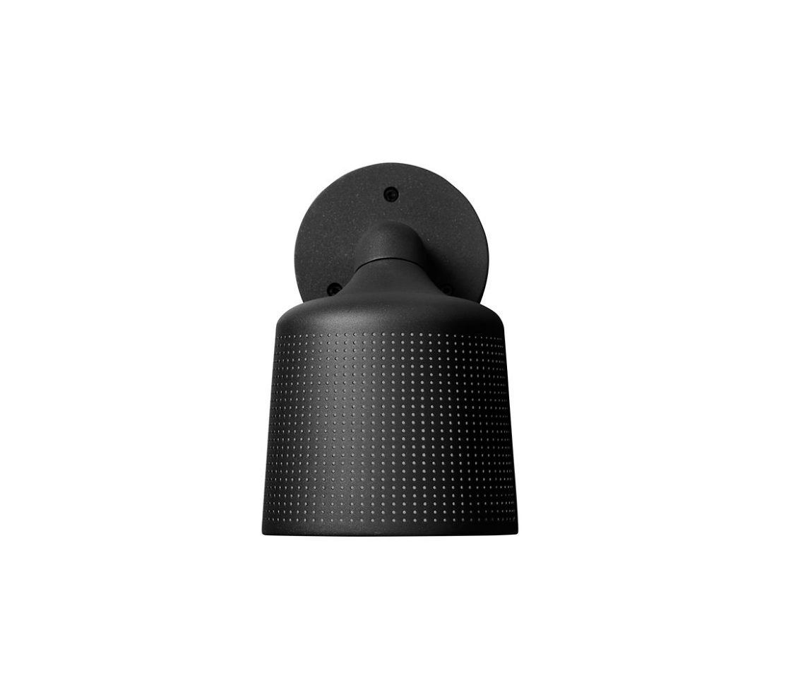 Væglampen er fremstillet af pulverlakeret rustfrit stål og mat glas og har en perforeret lampeskærm, som tillader lysstrålerne at skinne gennem den robuste aluminiumsoverflade og give et flot og behageligt lys.