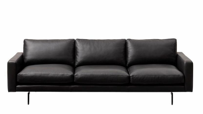 Klassisk enkel sofa med kantet tidløst design fra Wendelbo. Edge V.1 sofaen er en 3 personernes sofa på 240 cm med 3 sædehynder. Den er betrukket med sort kvalitetsskind og har sorte smalle ben. Siddehøjden er 40 cm og sofaen er 90 cm dyb. Sofaen har gode sædehynder med skumkerne og fiberfyld. Ryghynderne har dun, fjer og fiberfyld for en blød behagelig rygstøtte.