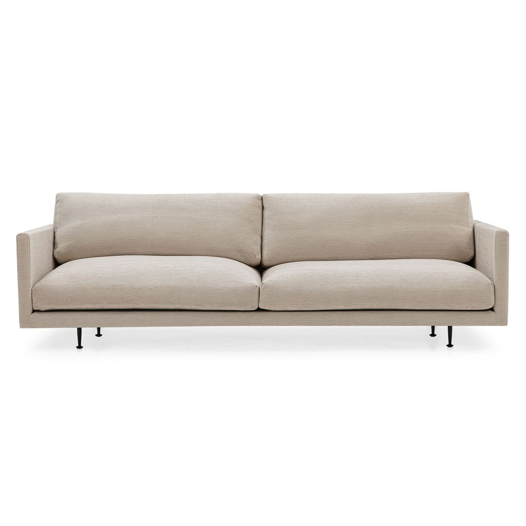 Maho Sofaen fra Wendelbo er en smuk 2,5 personers sofa. Sofaen består af Modul 40 i en smuk og elegant farve der vil bringe massevis af charme til din stue. De store rygpuder giver god plads til at læne dig tilbage og slappe af efter en lang dag. De sortlakerede stålben giver sofaen et minimalistisk og klassisk udtryk. Tilføj din egen stil med pyntepuder og lækre plaider. Om du vil fortsætte den mørke æstetik eller om du vil tilføje friske farver og mønstre er helt op til dig.