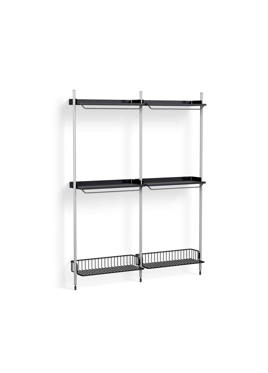 HAY Pier System 1032 2 Columns 162x209 cm - PS Black Steel/Clear Anodised Profiles/Chromed Wire Shelf